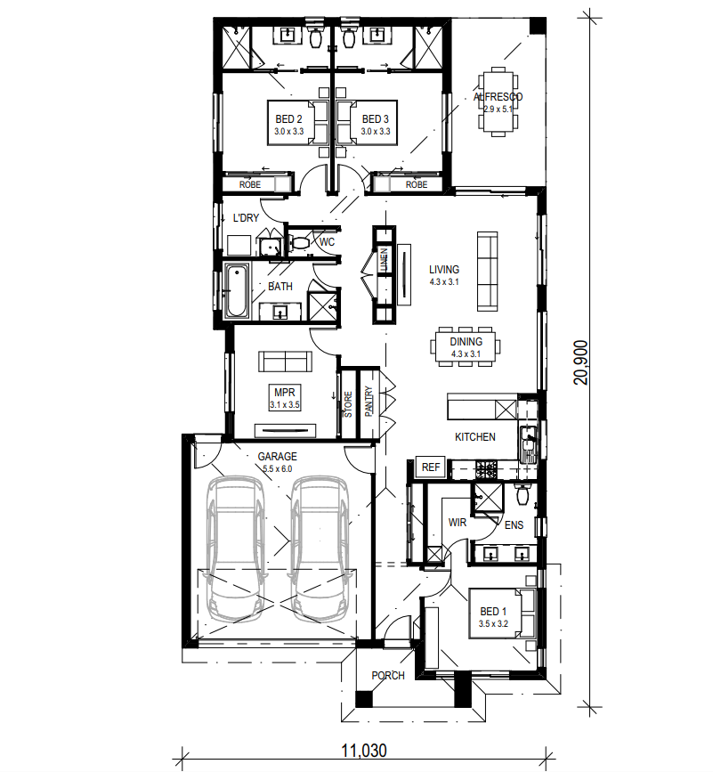 – The main bedroom features a walk-in robe whilst the remaining two bedrooms have built-in robes.